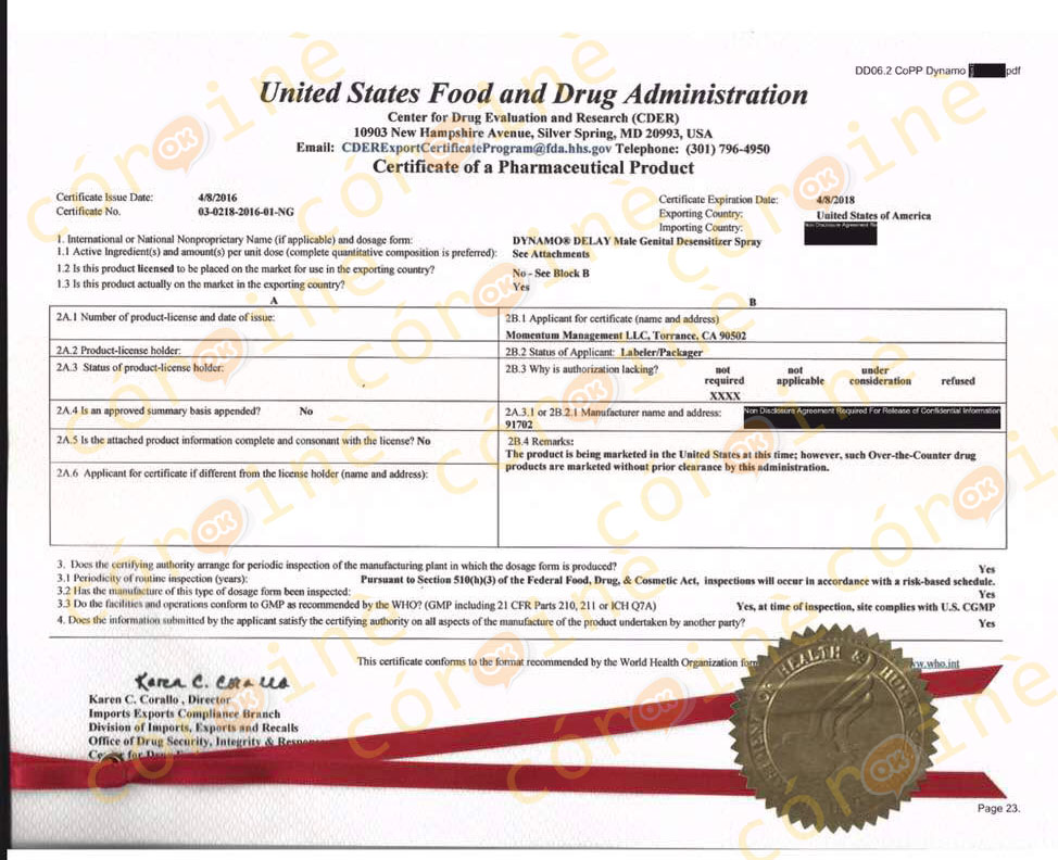 Hiếm có sản phẩm nào có thể in được thành phần chi tiết rõ ràng lên sản phẩm, ngoại trừ Dynamo Delay, bởi đây là sản phẩm được chứng nhận và cấp phép bởi bộ y tế